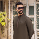 Executive Suit For Men With Cuts Work On Collar and Placket