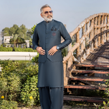 Executive Suit For Men With Cuts Work On Collar and Placket