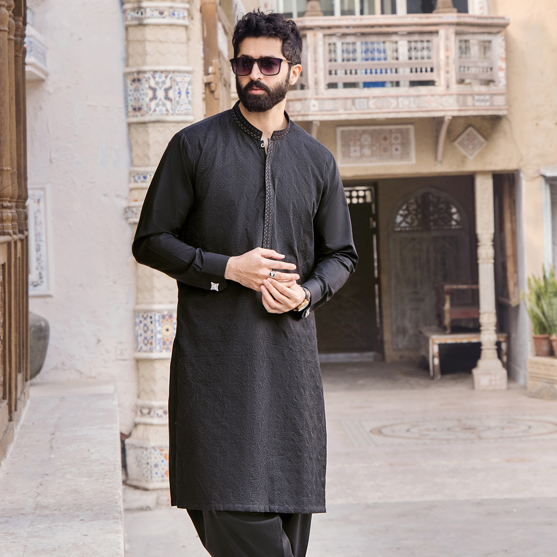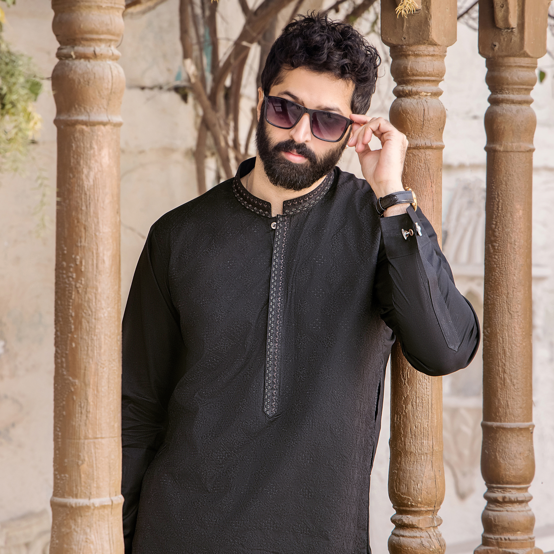 Executive Suit For Men With Cuts Work On Collar and Placket
