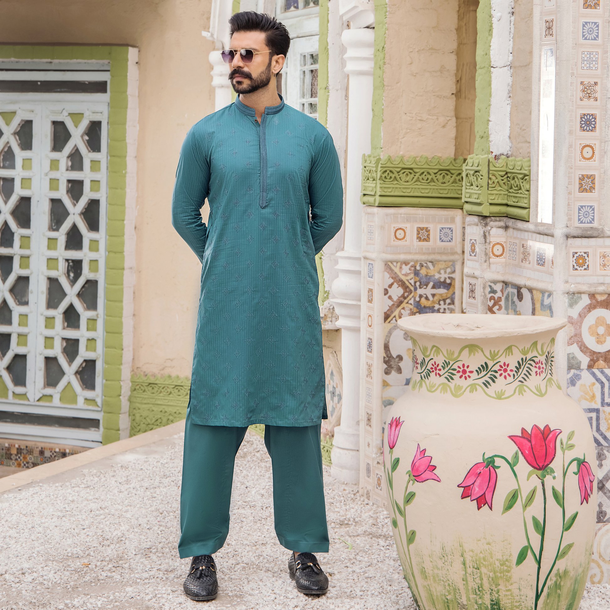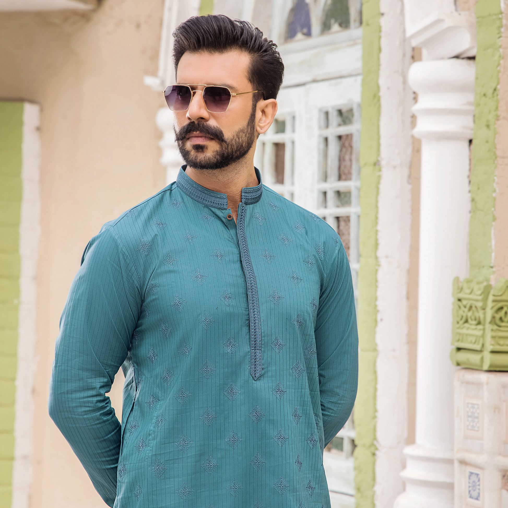 Executive Suit For Men With Cuts Work On Collar and Placket