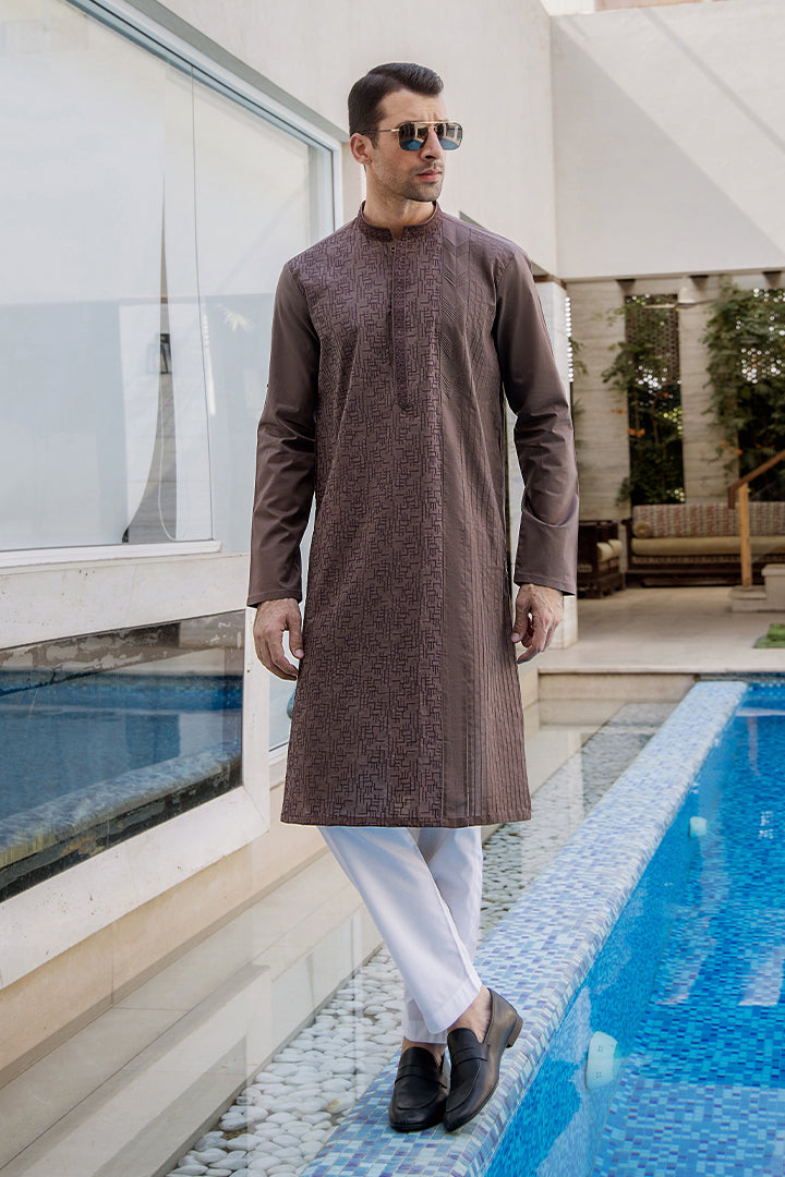 Executive Suit For Men With Cuts Work On Collar and Placket